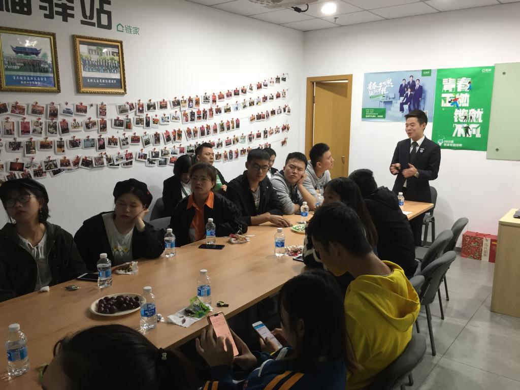 微露的秋阳冉冉升起,晨雾也点点散去,学院师生在链家负责团队的接待下进入了渝中区融创店。上午9:00,交流会正式开始。首先,连城总监介绍了重庆链家的情况,并对房产行业发展的环境、市场、互联网+模式、消费者需求等进行了详细分析,并谈到了房企做网上平台的困难以及一定要做网上平台的原因。房子的低频交易,不能形成客户粘性;这个行业有很多痛点,链家想改变这些行业痛点仅凭自身是做不到的,这必须集合整个行业的力量。所以,链家主打贝壳找房平台。