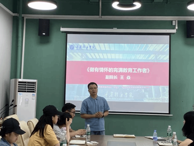 副院长王焱老师以“做有情怀的完满教育工作者”为主题,分享了他多年的辅导员工作经验和感悟。王老师说,只有热爱学生工作且认同完满教育理念,才能做好辅导员这份工作,并引用阿尔贝·加缪所说的“请不要走在我后面,我可能不会引领;也不要走在我的前面,我不会跟随;请走在我身边,做我的朋友”,来鼓励辅导员们陪伴学生,树立榜样,与学生做朋友,与学生共同成长和进步。最后,王老师希望所有辅导员在暑期进行沉淀和思考,对下学期即将面对的工作困难和挑战,提前做好预判和准备。