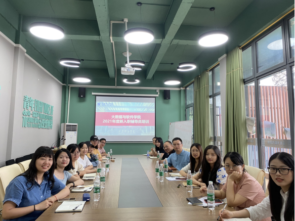 为进一步增强新入职辅导员对工作角色和岗位职责的准确认识,对学生工作的全面了解以及提高辅导员工作科学化水平,大数据与软件学院于7月7日下午2:30在花果书院201会议室,开展了2021年度新入职辅导员岗前培训,大数据与软件学院副院长王焱、团总支书记马喆、学工办主任童学容作为主讲人,分别做了主题分享。