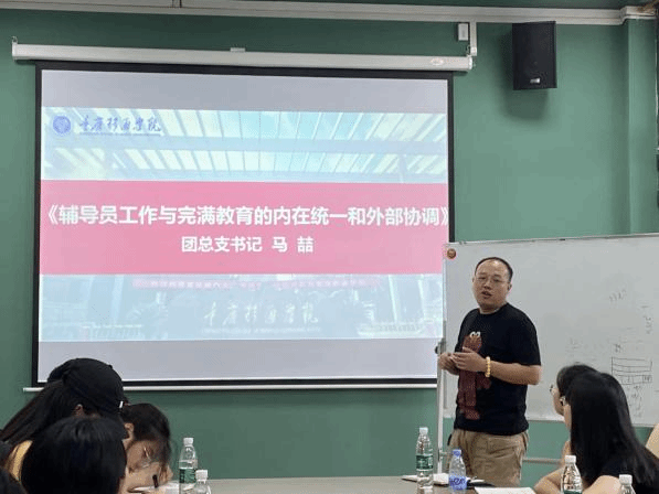 团总支书记马喆老师以“辅导员工作与完满教育的内在统一和外部协调”为主题,讲述了他对辅导员岗位教师+管理双重身份的理解,以及对完满教育的理解,此外,马老师还并分享他寻思工作中一直坚持的四句话;“事繁勿慌,事闲勿荒;有言必信,无欲则刚;和若春风,肃若秋霜;取象于钱,外圆内方”,用他的坚守勉励辅导员们。