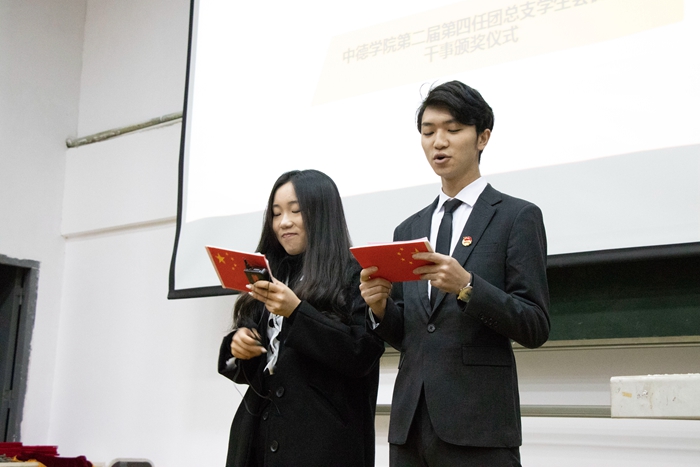 大会伊始,全体师生起立合唱共青团团歌,震撼的场面,小型而不失庄重的场面让全体师生为之动容。随后播放中德学院2018年团学工作精彩的回顾视频,一次次汗水、一次次感动、一次次荣誉让在场的全体师生,无不感慨,掌声与尖叫声未曾停歇。
