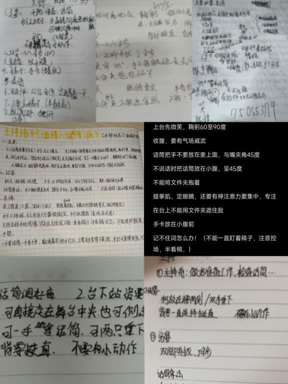 罗岚老师告诉大家进场前需要将话筒、音响调节好,进场时侧身或者微侧,双手自然垂下抑或放在腰两侧。女生站立时需要双脚并拢或者丁字步站好,男生则需要双脚微张,呈60度左右,身型正直,肩膀打开,小腹微收,抬头挺胸。讲到表情的时候,罗岚老师以错误示范素材为例,告诉大家在舞台上要微笑,说话时需提颧肌,并且眼神坚定不能恍惚,身体也不可以来回晃动,而后又强调主持人在舞台上讲话不能将手卡遮挡住脸,话筒只能握手柄,不能握麦克风,手势副语言需落落大方。同学们在评论区积极互动,很多同学都说学会了如何微笑,增强了自信心,会将培训知识点运用到今后的主持活动中。