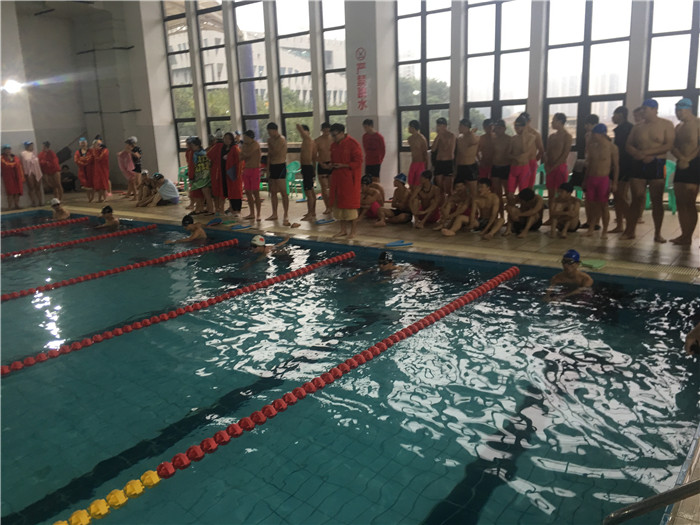 大一的新生普遍都比较紧张,测试对他们来说也是第一次经历,后来在教练的指引下他们才渐渐的找到了一些感觉。尽管,12月的池水是冰冷的,但我们队员的心却是炽热的,丝毫不惧水的低温。下水前,队友们都在互相鼓励加油,虽然在测试时大家都是竞争对手,但私下都是共苦的好队友、好兄弟。经过三个月的试训,新队员们游泳技巧逐渐变得熟练,不再像当初进游泳队那般的生疏。
