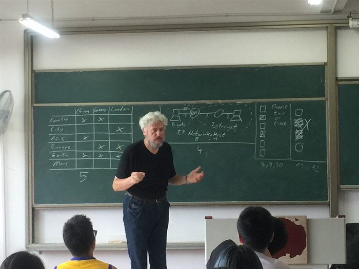 外教Jan Maltry非常善用以比喻的方式,深入浅出。他先是通过举身边的例子,来提出基本研究概念并不断地重复这几个概念词语,使得同学们们对基本知识能有比较深入的理解和记忆,然后再扩展开来,用自己的日常经历,以多组照片记录的形式与大家分享,并详细分析每组图片中的成分,力求同学们能完全理解。