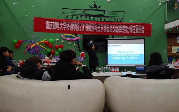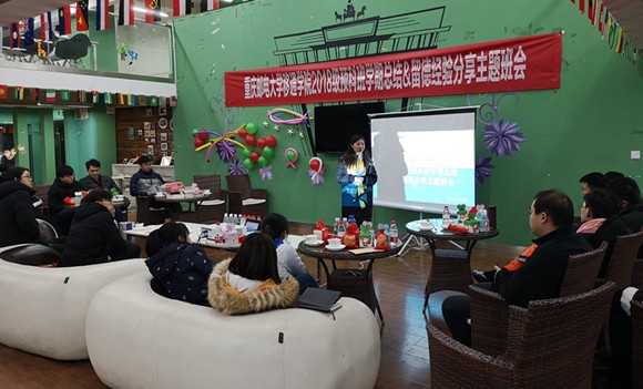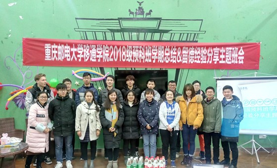 12月25日16时,在中德书屋,中德学院留学服务中心组织开展了2018级预科班学期总结暨留学经验分享主题班会。德语教研室田园、袁潇老师,德国外教Markus、国际交流与合作处徐瑶老师、留学服务中心相关老师及预科班全体同学参加活动,本次班会由预科班班主任张玉梅老师主持。