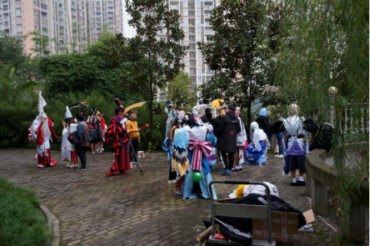 且听枫吟,落叶一片,已是华灯初上,却多想时间停下,惜时不待人,白云流霞。随着天色渐晚,再次左顾右盼,大家些许劳累,参与本次读者公园的coser们在台阶上合了张影,定格了这一瞬却又永恒的记忆,回归日常,随着风去流浪。本次的活动就在欢声笑语中结束了。