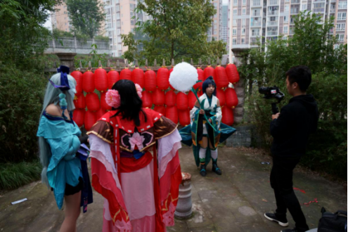 左搭肩,右帮腔,有妆娘与道具师在侧,coser们做好准备。穿上各式《阴阳师》游戏中人物的cos服,化好妆,手持道具,动静有时,大音希声,灯光师,摄影师就位,舞台,就绪,此刻,大幕渐起,团片于此开始。Coser们身姿曼妙,翩若惊鸿,婉若游龙,荣曜秋菊,华茂春松。转圈,举手投足间,随着闪光灯一闪,一张张时间定格在相片中,婀娜多姿。他们的微笑沁人心脾,仿佛《阴阳师》游戏中人物再现;他们的眼神充满怒气,尽管他们毫无忿怒之意;他们的素手纤纤,灵动着万千姿态。占据着你的眼神。