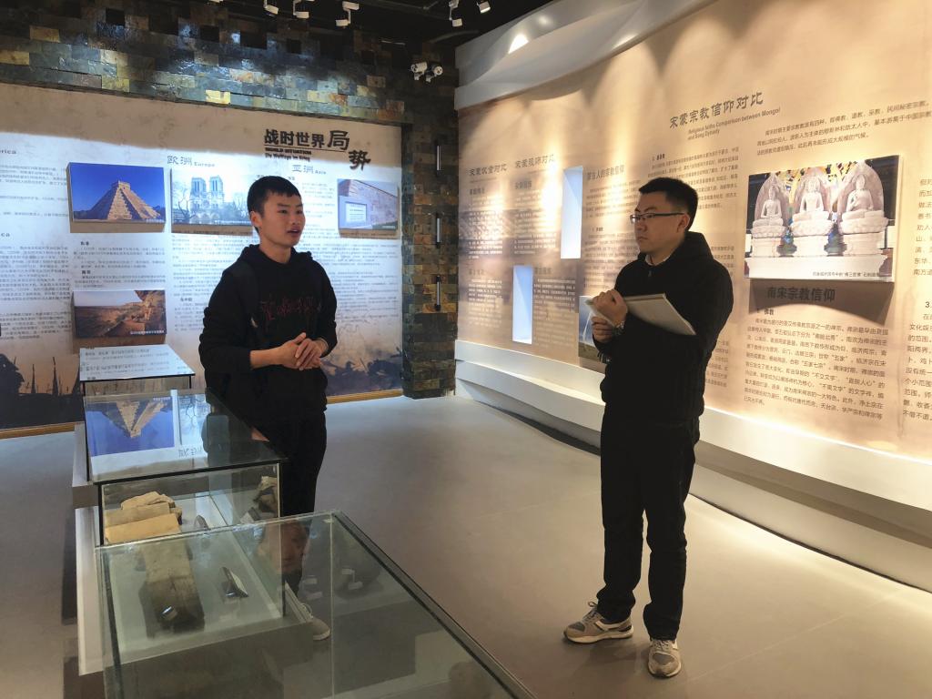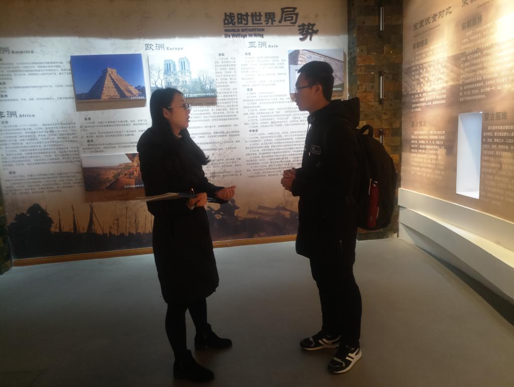 二楼展厅由冯懿老师和位光辉老师担任考核员。考核完之后,老师们也随之给出了建议:删减不能太多,不要因为紧张而语速过快,试着把语速放缓,这样即使出现了小失误,也可以给自己充分的时间挽回。对于所提及的人物要注意官职的正确性。开庆元年的钓鱼城之战中,由于记载较为详细,每月都有标志性的事件,作为讲解员在脑中对这段历史有大的框架,然后按照事件的发展,填补具体内容。同时,讲解员应该在讲解中与听众进行眼神交流,随时观察听众的状态,并据此调整讲解的速度和侧重点。宋蒙战争爆发的背景这块较难,因为涉及政权较多,不能一笔带过,更不能直接看着文字讲,而是要在理解各政权相互关系的基础上逐一介绍,使听众对这段历史的发展有个清晰的认识。