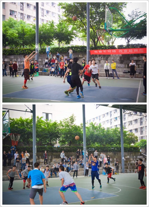 No brothers,no basketball。就成为了他们寝室的口号。课余时间他们总是会相约球场:“走走走,打球去。”无论我们是在睡觉,打游戏,学习,他们都会一起换上球衣,穿上球鞋,奔向球场。每一次传球,都是如此的准确,因为这不仅是一种技术的熟练更是他们之间的默契与信任。每一次不管是谁投篮,都是如此的信任,因为他们知道这一球,承载着兄弟们的希望。