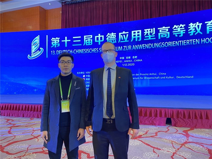 12月1日,由安徽省教育厅和德国下萨克森州科文部主办,合肥学院与德国奥斯纳布吕克应用科学大学承办的“第十三届中德应用型高等教育研讨会”在合肥召开。此次会议采用远程交互形式,共有来自北京大学、南京大学、北京外国语大学、河海大学、安徽大学等93所高校的230余名参会人员相聚线下,与德方专家“隔空对话”。中德应用技术学院教师代表胡方洋参加此次会议。