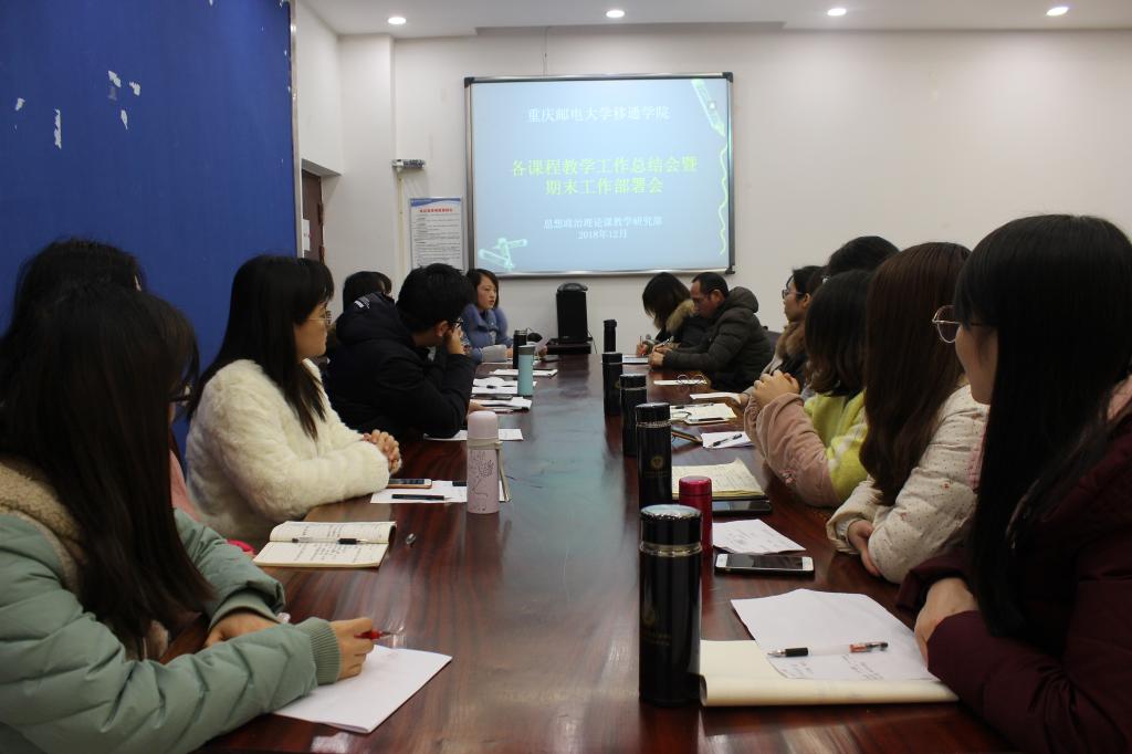 时光荏苒,转眼一个学期在忙碌和充实中匆匆而过。为全面总结本学期工作,进一步完善管理,优化教师队伍,提升教学质量,努力推进各项工作在新学期全面落实,实现部门内涵发展。12月26日下午,思想政治理论课教学研究部在行政楼417会议室召开了2018-2019学年第一学期教学工作总结会议,会议由教学部主任邓燕副教授主持,全体教师参加了此次会议。