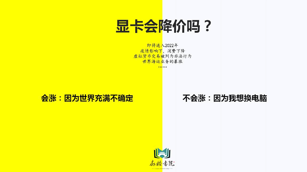 最活动后,主理人滕老师再次抛出开始的问题2022,你的显卡会降价吗?同学们达成一致----2022,显卡不会降价。