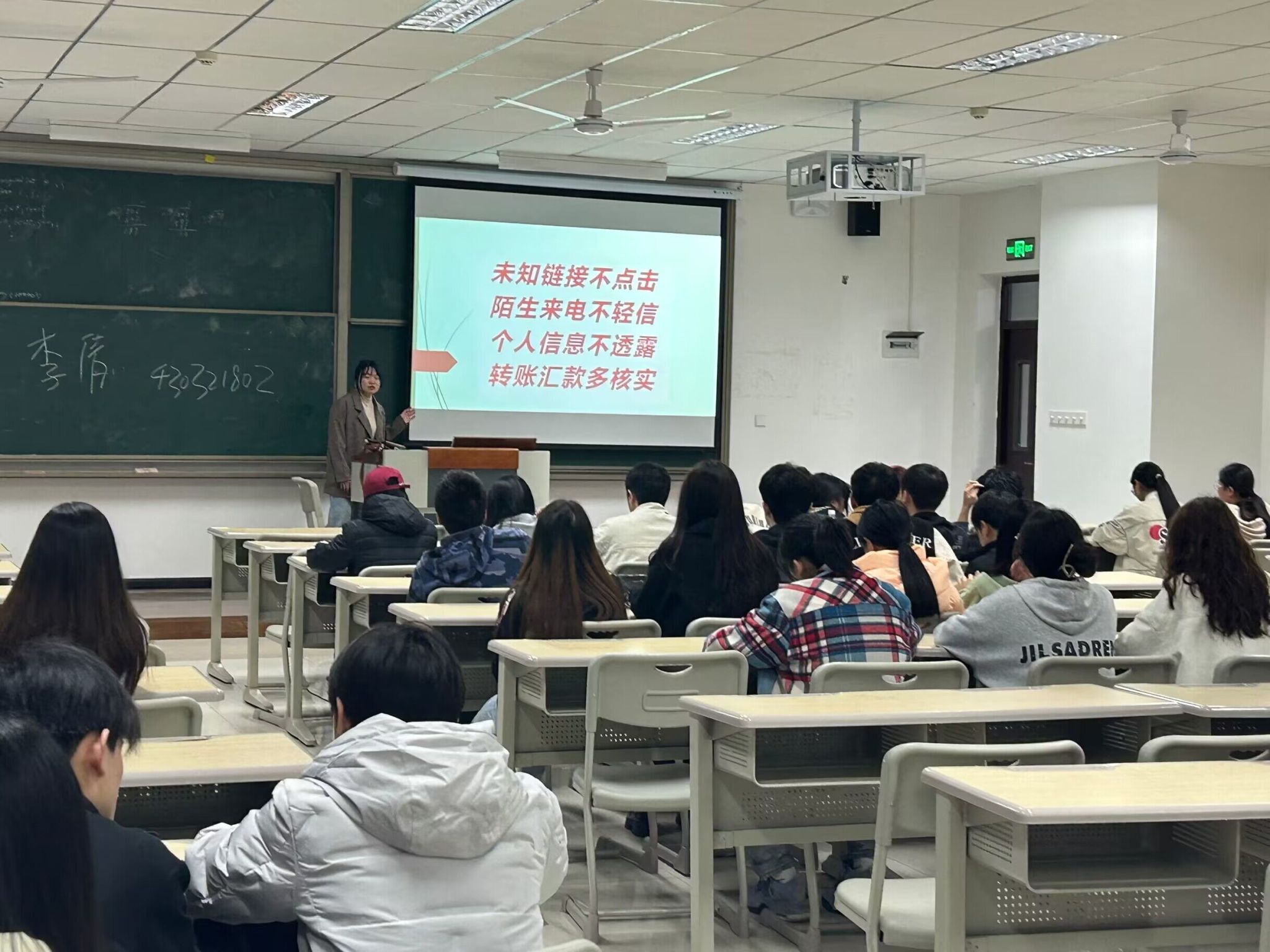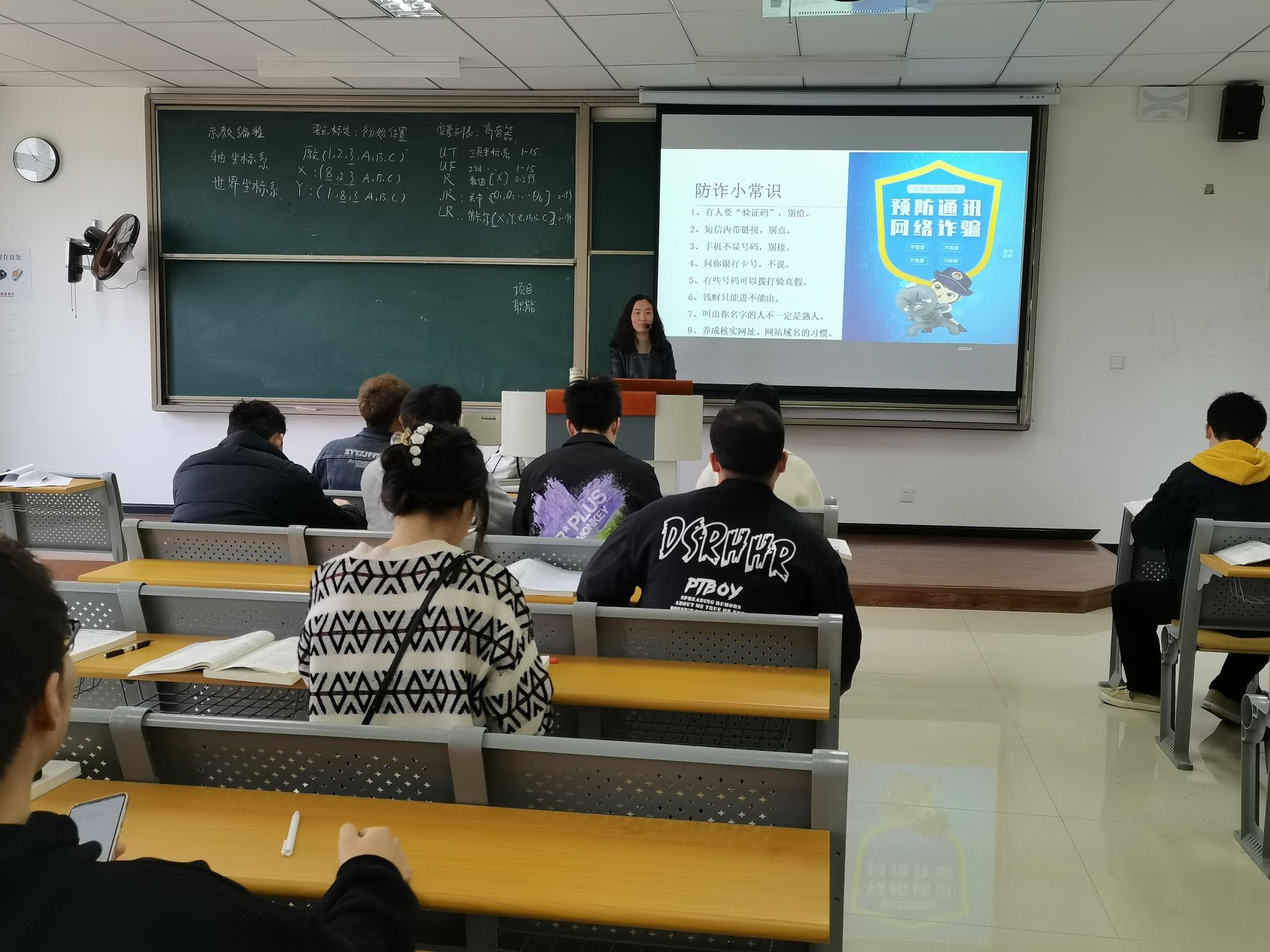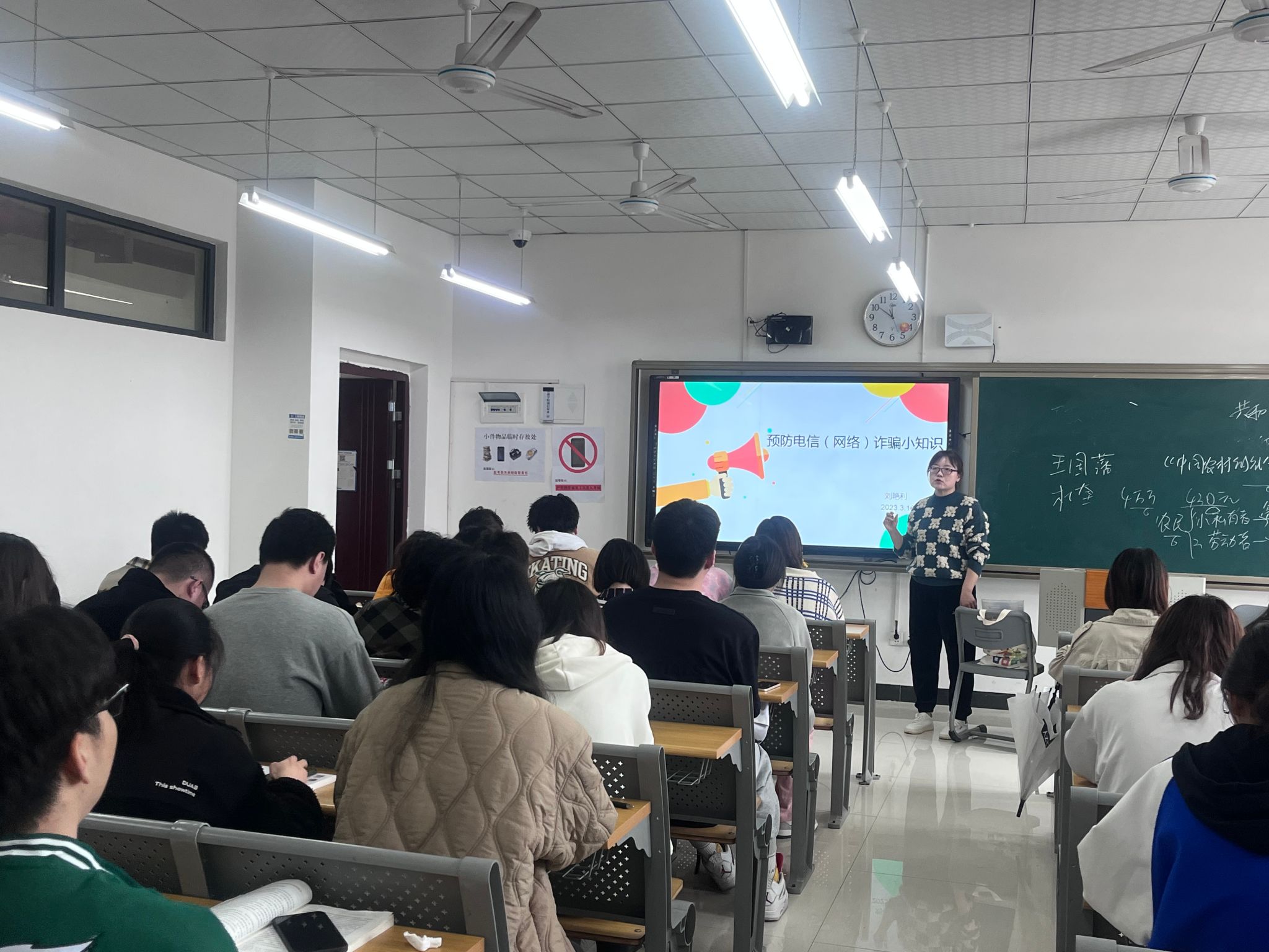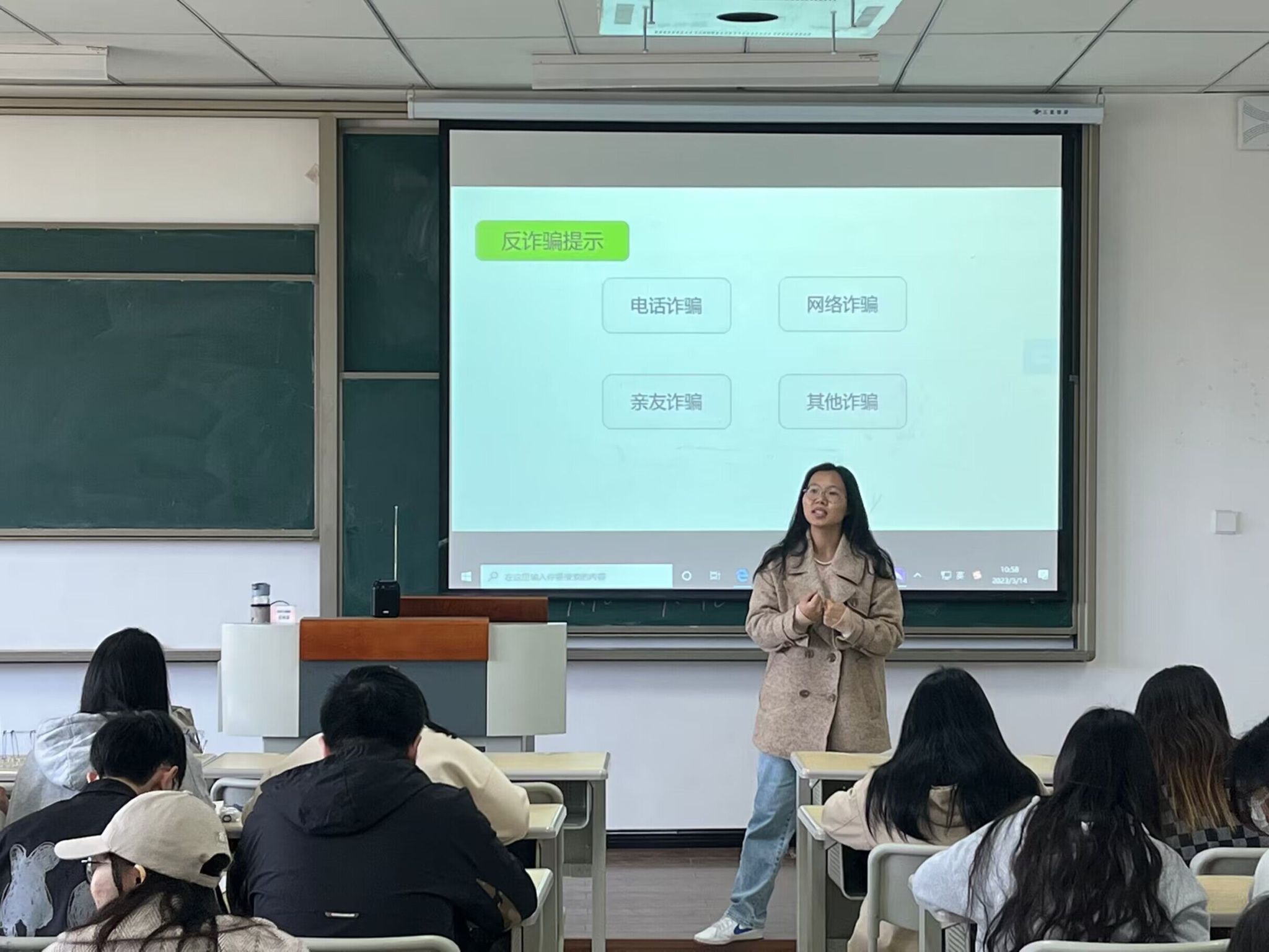 3月16日中午,刘艳利老师与2021级管理科学与工程类1-2班学生在竹逸B203教室开展了反诈宣传活动,师生一起学习了电信网络诈骗防范知识,引导学生提高反诈的意识和能力。