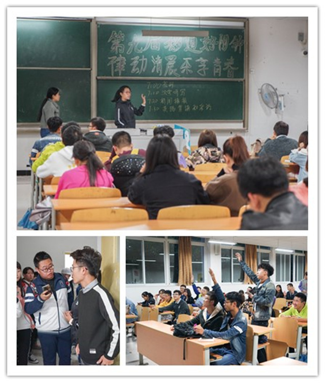 一日之际在于晨,作为大学生就更需要抓住这在校的黄金时间,从而丰富自身的课余生活,锻炼自己的能力,提高自身的综合素质,在将来更好的面对社会,适应社会。移通好闹钟就为移通学子提供了一个抓住时间的好机会,通过两两搭档的形式分组,通过每天清晨打电话或短信的形式叫醒对方,并一起完成早操背句子等活动,在相互督促中养成良好习惯,又促进了彼此的情谊。早起活动从2017年10月9日开始,到10月13日结束,五天不算太短也不够漫长,却能让一个好习惯开始形成,让两个陌生人变得默契,让每个人的清晨有了不一样的律动。