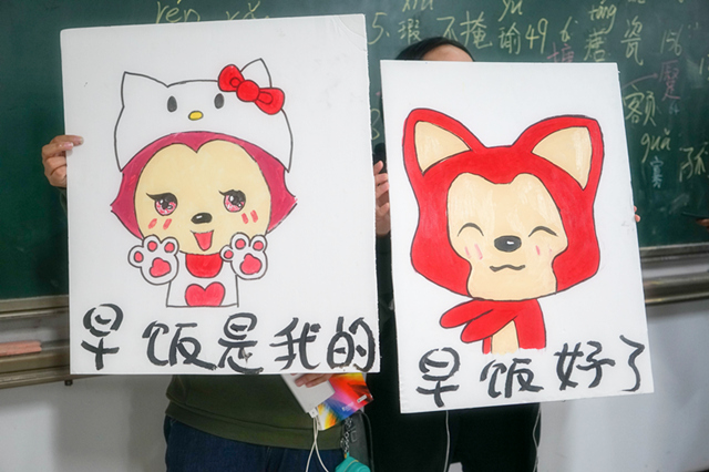 每天早起的不仅是参与移通好闹钟的小组成员们,有时候起得更早的是美宣部负责活动的工作人员。他们在天蒙蒙亮时就在校园各处藏好为好闹钟参与小组准备的早餐,又在群里提醒组织各个小组打卡签到,还在湿气与寒气并存的打卡地点准备好相关道具,为每一个前往签到的小组做好相关服务与记录工作。活动拍照用的卡片、精心编排的各类游戏、英语句子、早操、晨间新闻……活动的每一个细节无一不凝练着他们的心血。他们或许不是移通好闹钟的焦点,但他们却也是这清晨律曲不可或缺的一部分。