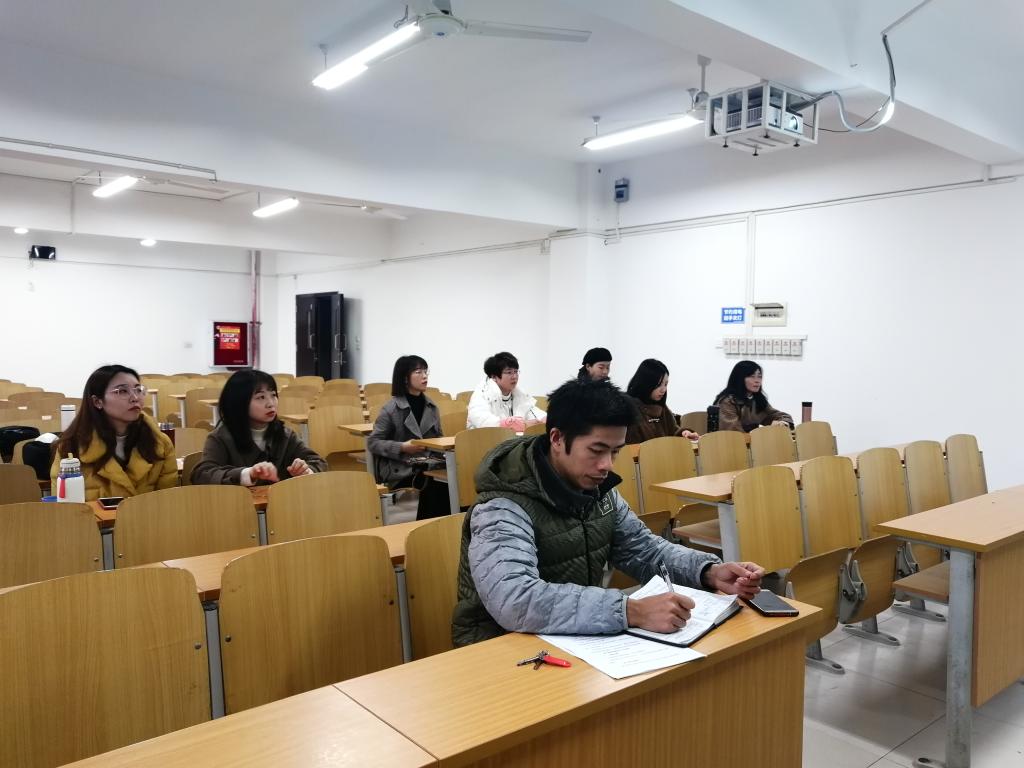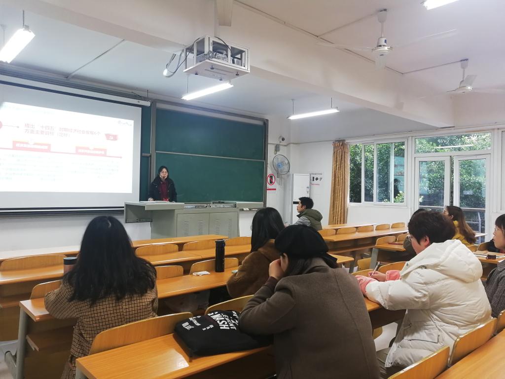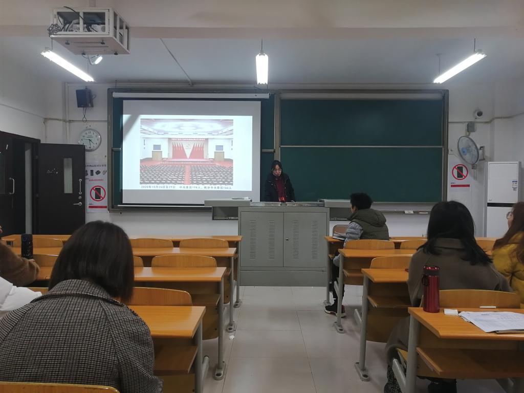 为深入学习贯彻党的十九届五中全会精神,思政教学部德育教研室全体教师在唐孝庆副教授的带领下,于12月2日下午4点在1310教室集体学习了《中共中央关于制定国民经济和社会发展第十四个五年规划和二〇三五年远景目标的建议》(简称《建议》)和《中国共产党第十九届中央委员会第五次全体会议公报》(简称《公报》)。