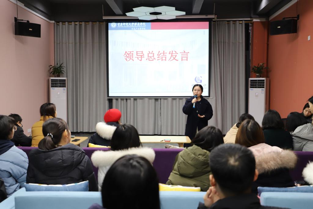 答辩结束,通识教学部主任皮若兰对此次大赛进行了总结。她肯定了此次大赛取得的成果,并高屋建瓴的站在学校人才能力培养的角度对大赛的各方面都提出了更高的要求:在论文讲解方面,学生不仅要对论文内容进行简单的概括,更需要把讲解重点放在研究思路方面;在沟通表达方面,应该进一步强化语言表达能力,使其更有逻辑、更有条理;在心理素质方面,还需进一步克服自身的紧张,使自己在答辩过程中更加淡定、从容。她还进一步指出,课程论文答辩,不只是某种简单能力的体现,而是各种能力以及综合素质的显现,希望以此为契机,参赛选手应该持续对写作、语言表达等能力进行训练,这种训练所达成的能力无论对任何人从事任何岗位都无不裨益。