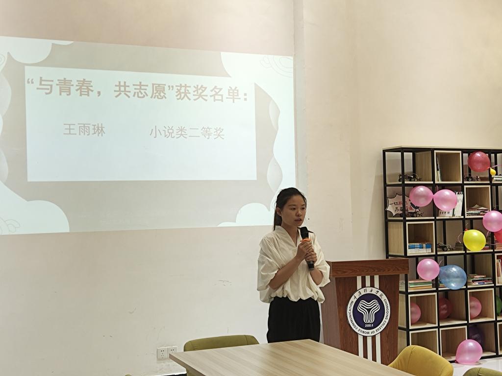 在仲心老师致辞后,此次征文活动的小说组一等奖获得者代表陈羽雁,率先分享了她的心路历程,她表示,这次活动最难忘的是忙碌的改稿过程,最晚的一次改到了凌晨三点,一整天废寝忘食,甚至累哭了,也想过不写了,但是终于还是坚持了下来,反复改了五遍,终于交稿并取得了理想的成绩。诗歌组二等奖获得者代表梁小梅表示,其实自己从来没想过会获奖,因为自己并非是一个文笔多好的人。由于学姐逼自己交一篇,自己拒绝无果才与此次征文活动结缘,通过看抗疫纪录片的方式寻找灵感,又在指导老师的帮助下一次次修改,终于成就了自己的第一首诗歌,在感受到创作不易的同时,也建立起了写作的信心。散文组二等奖获得者代表王雨琳谈到她的创作历程,在多次的养老院志愿服务活动中,她认识一位抗美援朝战役的退伍老兵,在多次的聊天交流中,她萌生了将这位耄耋老人的经历记录下来的冲动,这次征文活动就是一个很好的契机。在指导老师仲心的多次修改中,自己从中积累了很多非虚构写作的经验,也养成了时刻将亲身经历转化为文字的好习惯。
