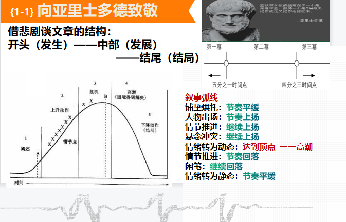 毕然老师从结构、情节发展、叙述节奏几个方面进行解读,将故事的起因、发展与人物对应,通过人物与故事的交互进行整体节奏的把控,将故事的发生推进至有矛盾冲突的发展,并将动态矛盾激化,即水到渠成地谛造了故事的高潮,高潮是故事弧抛物线的顶峰,顶峰之后即回落至故事的尾声。好看的故事如果用“一波未平一波又起”的方式呈现,即是多个抛物线的组合,形成了起伏有致的“波浪线”的故事结构。人物与故事在结构行进中密不可分,相互织造,即可形成完整的小说结构。