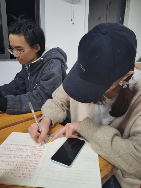 夜色深浓,窗外漆黑一片。大家凝神静气地抒写着自我,有的指尖在手机上舞动,有的架起笔记本敲击键盘,有的用蘸着彩墨的笔写在本子上。而老师则从手机在线文档中看到同学们一行行鲜活的文字,不时发出会心的微笑。
