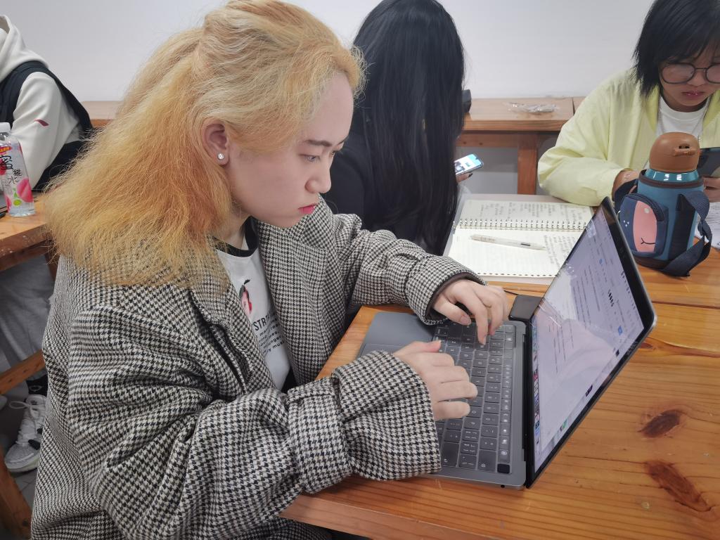 大家一片哗然,但同时已经有键盘的敲击声在教室回荡了。刚从热烈的讨论中脱离出来,同学们感到灵感迸发,满满的写作欲使得课堂迅速安静下来。