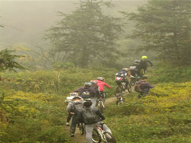 宽阔的马路上,样式繁多的汽车穿梭来往,大家和维护队也都格外小心。但因骑行速度各异,人数庞大,所以采取分批带领的方式,保证每一位参与者的安全。休息时,大家围坐在一起谈笑、分享趣事。风轻轻吹过,带着花香,伴着四周叽叽喳喳的讨论声,这趟艰难地旅程也变得轻松了许多。但因为很多人都是第一次骑行,体力不支、车链滑松、出现昏厥、甚至有些路完全不能通过,问题接二连三。但在大家的齐心协力下,还用最强的意志战胜了困难。最终登上山顶时,大家脸上不禁泛起了喜悦,也切实的体会到“更喜岷山千里雪,三军过后尽开颜”的欢喜和“会当凌绝顶,一览众山小”激动心情。