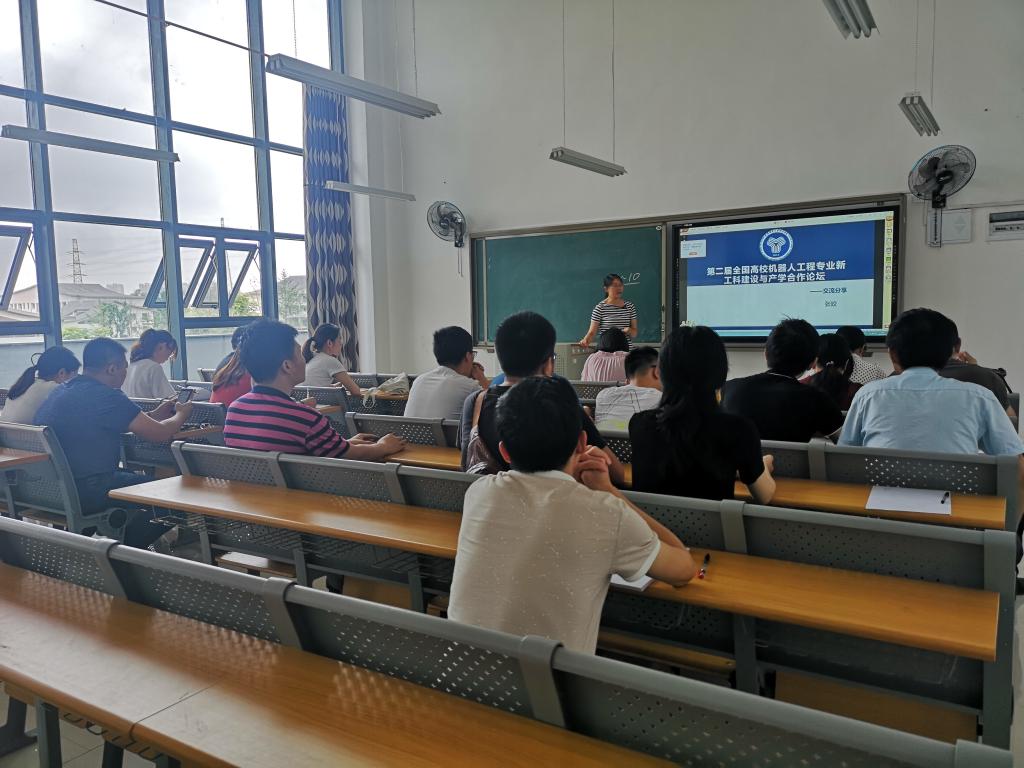 张姣老师以“第二届全国高校机器人工程专业新工科建设与产学合作论坛”作为切入点进行交流分享。在交流过程中,张姣老师详细阐述了自己的学习经历、学习体会和收获。从“机器人工程人才培养”、“机器人工程关键技术”、“机器人工程专业培养方向”、“机器人工程专业核心素养、课程体系、实验室建设、校企合作”等13个方面进行讲解和分享,还结合东北大学、浙江大学、国防科技大学等诸多名校的实施方案,介绍了机器人工程专业人才培养模式和课程体系,拓展了我们的视野。