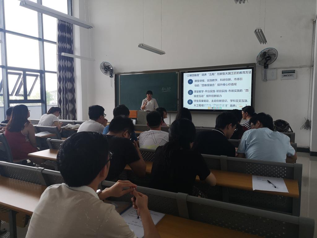 杨佳义老师将“第六届高校电气类专业教学改革研讨会培训”作为本次交流核心,将培训会上各位知名教授发言进行精简。然后,结合目前新型二级学院建设的目标和发展现状与全场教师进行了非常全面的交流和研讨。并就智能工程学院下学期即将以教研室为单位申报精品课程任务,提出了“建设线上金课,创新教学模式”的意见,同时就“金课”应达到的标准,教师在“金课”中应担任的角色两个方面,进行了极具价值的研讨与交流。