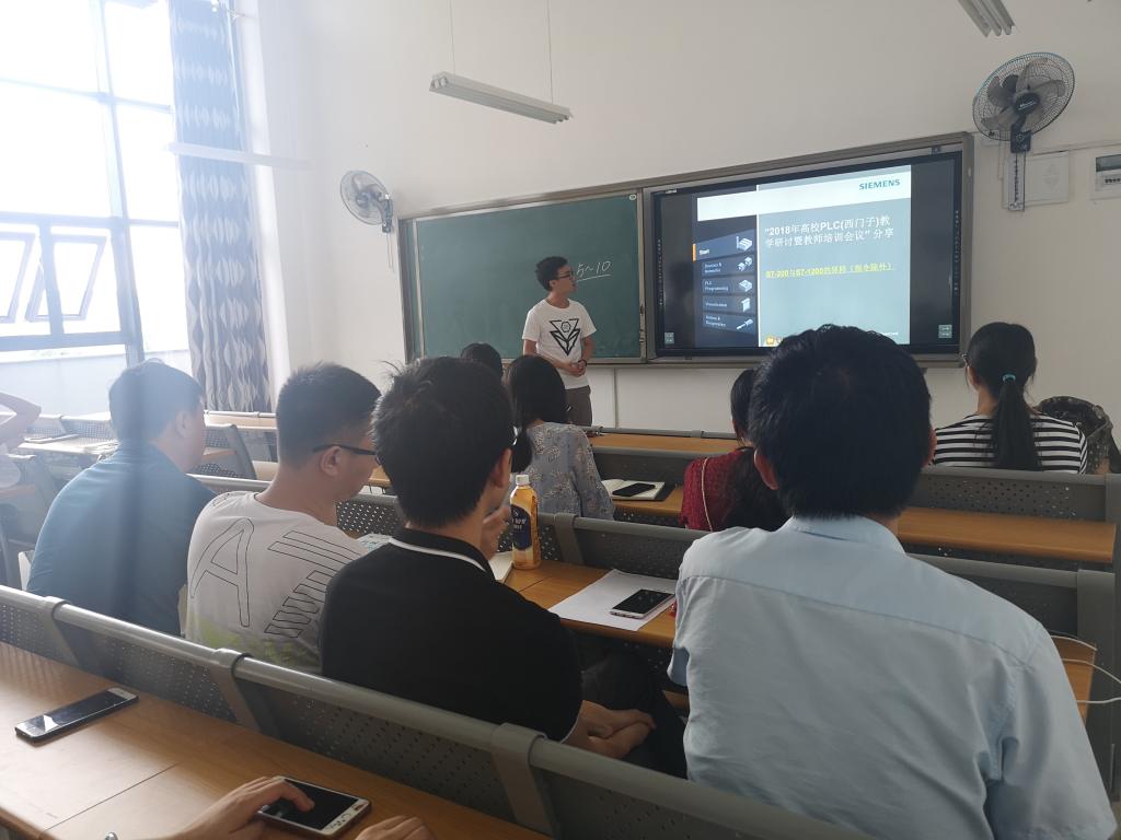 陈龙灿老师则是结合自身专业特长方向和自己多年来指导各类学科竞赛丰富经验为前提,以“2018年高校PLC(西门子)教学研讨暨教师培训会议”为中心,与现场所有老师进行了精彩的交流和讨论。过程中,陈龙灿老师将其平日在课堂上缜密的思维、活跃的氛围,抑扬顿挫的授课方式为老师们进行详细的阐述和分享。