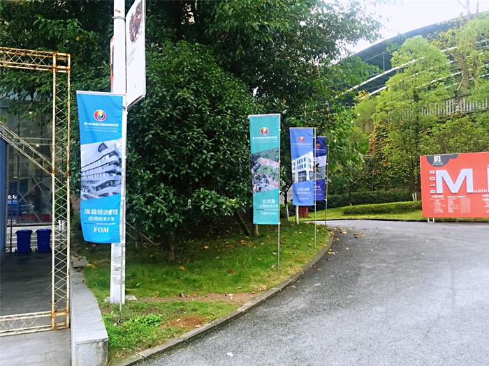 (绘有与我校合作的德国高校图案的彩旗)