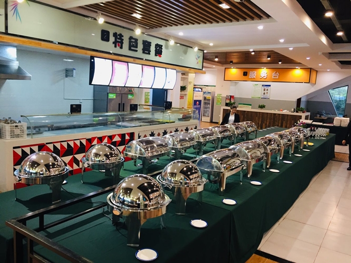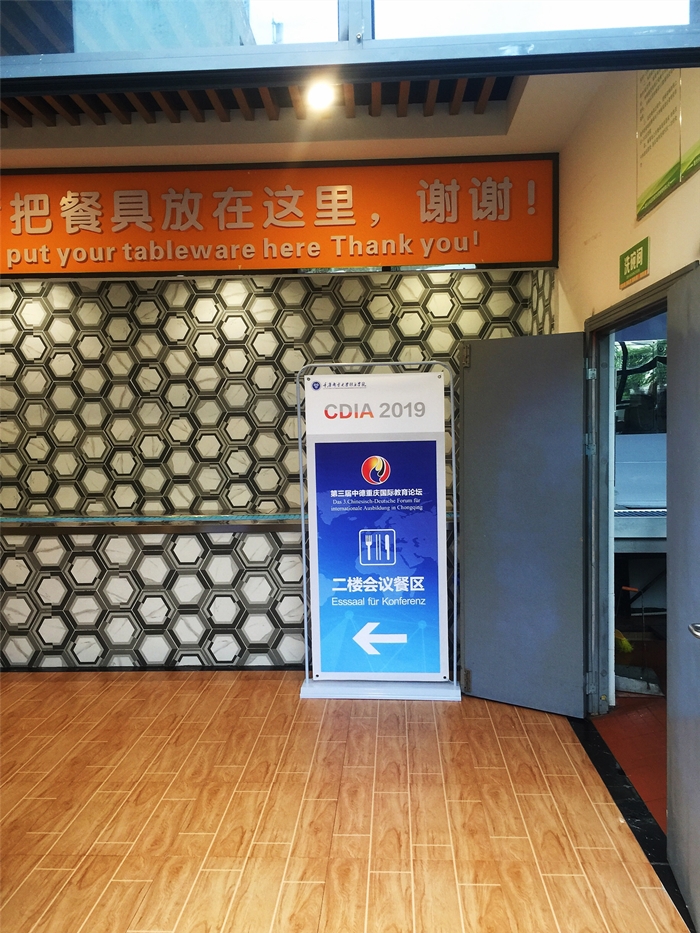 餐饮方面,本次论坛为与会嘉宾提供免费自助餐。餐饮区内,各种中德双语的指示牌随处可见,每一道菜品均配有中德双语的菜牌。为了此次能够圆满的完成餐饮接待工作,餐饮接待工作人员对于食材的选购严格把关,充分保证了食材的新鲜与安全。餐饮区内的保洁工作细致入微,力求为与会嘉宾提供一个整洁干净的用餐场所。