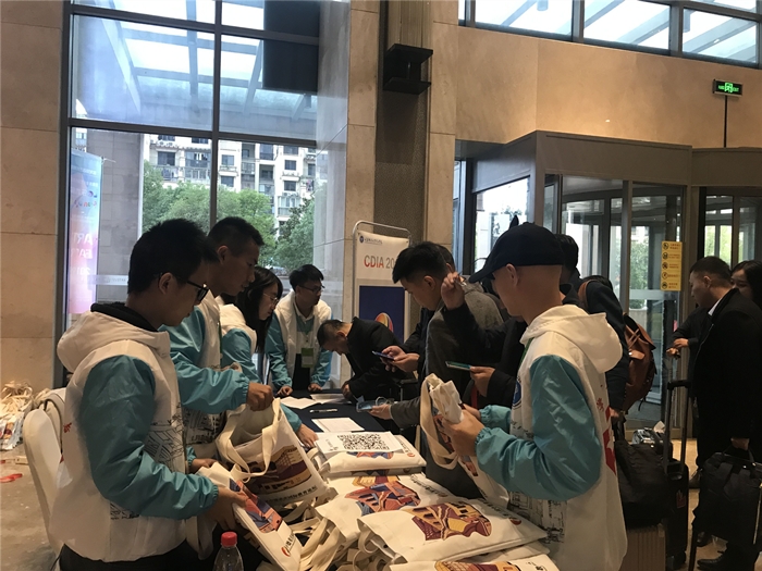 (志愿者为嘉宾办理报到)