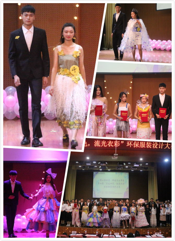 通信与物联网工程学院大力营造我校科技创新氛围,强化大学生创新意识,实现对学生综合素质的全方位培养。12月02日19时,团总支学生会承办的“青春四射,流光衣彩”环保服装设计大赛在下里巴人隆重举行。模特走秀展示独特设立理念,利用身边的废弃物品,巧手变宝制成绚丽时装。纸巾制作散花水雾百褶裙展现古典优雅之风;瓦楞纸、塑料膜裁剪成紧身战袍独展巾帼枭雄之美,独具匠心,各具风韵;经过两轮赛事的激烈角逐,评委根据“缤纷”、“奉献”、“活力”、“个性”四种风格的“完满”服装展示评分,选出优秀获奖团队,倡导更多同学参与环保行动。