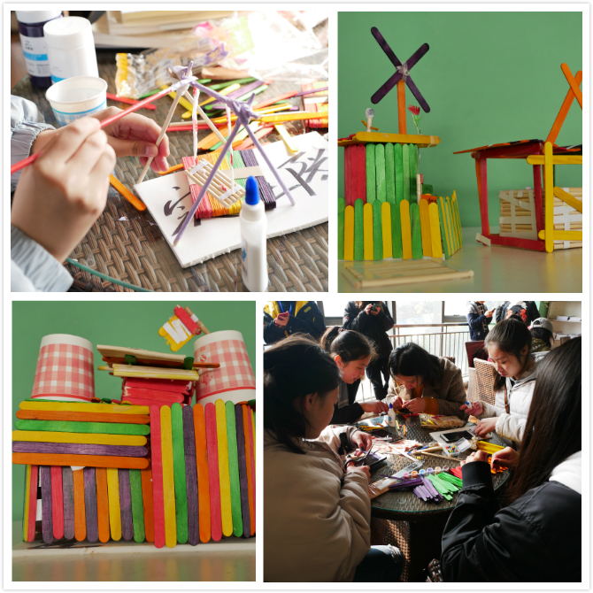 DIY手工协会承办的“遇见DIY,创造无止境”创意模型设计大赛,通过理论与实践相结合,充分挖掘内在潜力。由木条、皱纹纸等简易材料制作,牧场风车、魔幻城堡、梦幻小屋,代表对美好生活的向往与追求,独具特色、富有创意。他们团结一心、默契合作,在轻松愉快氛围的映衬下,努力为团队增添色彩。
