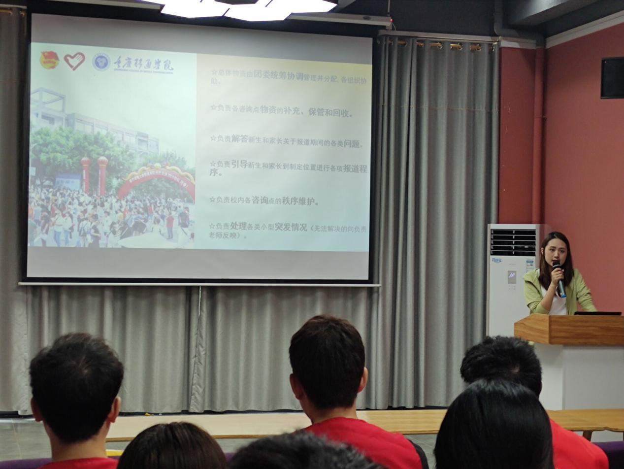 为贯彻落实我校关于疫情防控工作的相关部署,营造安全有序的报到环境,向新生提供全面、贴心的咨询引导服务,全力保障迎新工作的顺利开展,8月31日16:00点,校团委召开重庆移通学院2021年新生迎新志愿者动员培训会,全体迎新志愿者及部分校团委老师参加此次培训会。