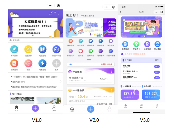 为提升程序整体性能,降低运营维护成本,使得程序运行更加稳定,在新版本启动初期,团队成员就达成一个共同的目标——就是摒弃2.0版本,从UI设计到前后端代码编写,一步一个脚印,所有功能逐个重新开发。功夫不负有心人,经过网信中心各位老师及学团队成员的不懈努力,终于还是迎来了指尖移通V3.0版本。该版本采用了时下最前沿的技术架构、科学的视觉设计、可维护性较强的运营模式,呈现出全新的用户体验,对崩溃say goodbye。