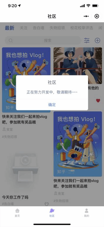 移通社区,我们将社区相关功能模块进行资源整合,将失物招领、告白墙等多个板块纳入其中,目前还在加紧开发中,敬请期待。