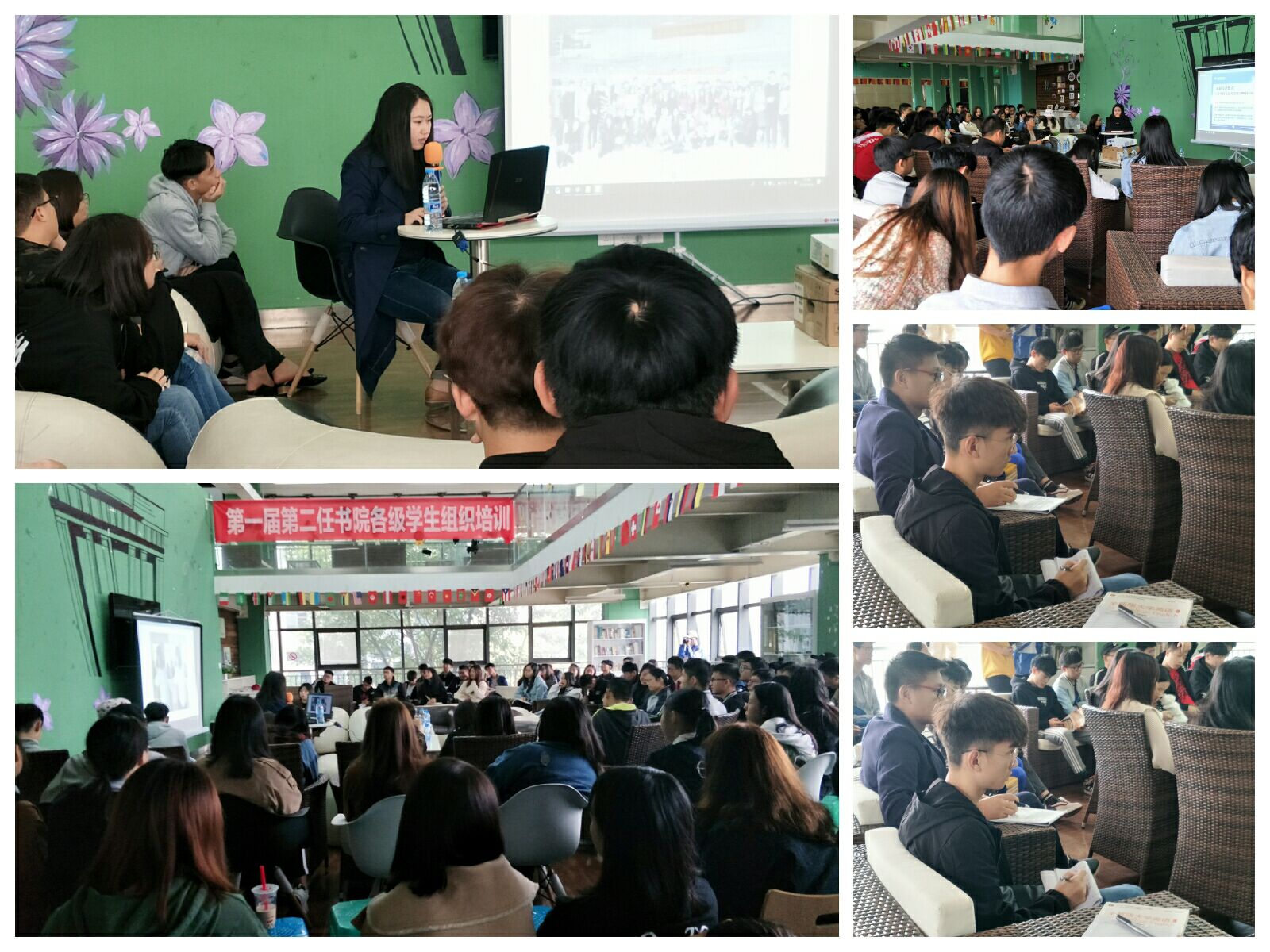 2018年10月18日中午12点,学生书院联合会及各书院办公室的全体学生干部干事在3101开展了本学期的第一届第二任学生书院联合会办公室专项培训会。本次培训由书院部指导老师彭渝鉴担任主讲,该次培训主要对办公室的基本职能以及相关重要工作事项进行阐述与疑虑解答。