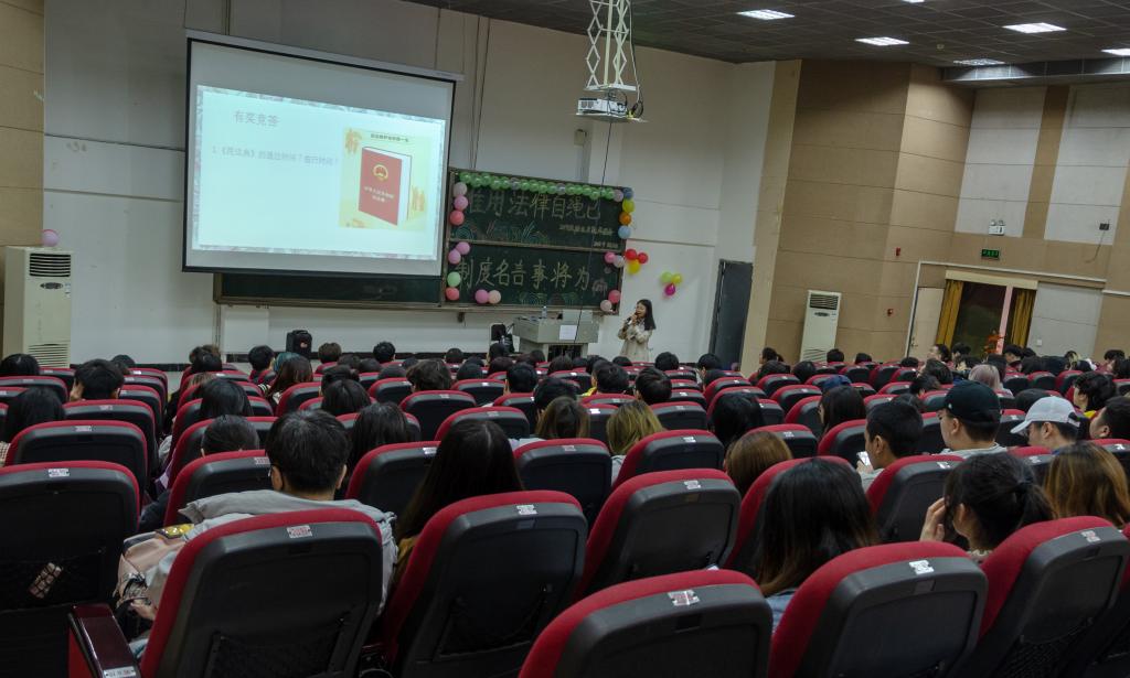 在有奖竞答环节,针对《民法典》的颁布时间、有哪些篇章进行了竞答,现场同学们氛围热烈。其次,针对前期收集到的同学们感兴趣的《民法典》里面的内容,关于离婚冷静期、大学生兼职、高铁霸座、劳动合同中的内容,法律硕士毕业的李洋老师为大家进行讲解。同时,大家分小组讨论了具有争议的法律话题,同学们畅所欲言发表了自己的看法。最后,辅导员黄小梅老师为同学们讲解了学校的部分规章制度,如毕业与留降级、违纪与处分、宿舍管理、请假流程,以此希望同学们能够遵规守纪,在法治社会中自由地追求梦想。