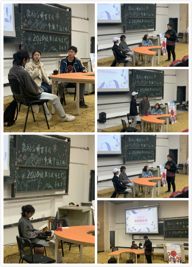 值得一提的是,为了让同学们直观地感受到奖惩对一名学生的重要作用,2020级数字媒体艺术6班的同学们为本次年级会带来了情景剧表演《致迷途知返的我们》。剧中,小甲是一位极其擅长篮球运动的男孩子,却极少参加集体活动,也经常出现迟到、旷课,甚至出现挂科的情况。经辅导员老师、家长的多次沟通后,并没有太大的改观。直到一年一度的校园篮球赛开始前夕,学院篮球对缺少一名队员凑成整队。在同学、老师、家长地鼓励与引导下,小甲同学终于同意上场。一场酣畅淋漓的比赛下来,小甲同学与全体队员们的配合,让小甲的内心渐渐有了一丝改变……精彩绝伦的情景剧中,六位演员生动的演绎着大学生在体验奖罚后改过自新的故事,演员们形象地诠释着——在失败中得到收获,才是真正的成长。