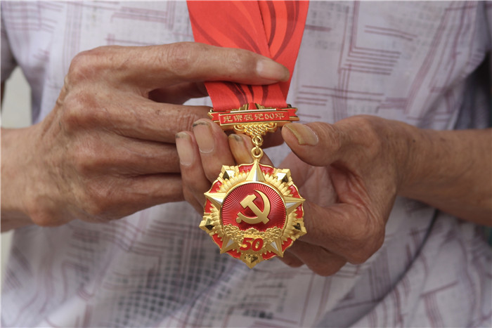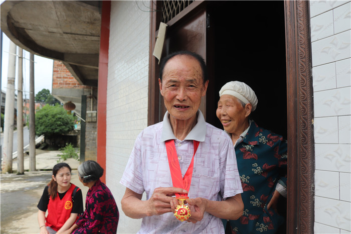 习总书记说:“新时代是需要英雄并一定能产生英雄的时代。”一百年征程波澜壮阔,五十载初心历久弥坚,磨盘石文化艺术服务团在村支书的带领下,来到鞍子苗寨一位老党员家中,任爷爷把五十年党龄纪念章紧紧捧在手中,忆往昔峥嵘岁月,任爷爷激动地表示:“一切为了人民,服务人民,吃苦要在人民前面,享福要在人民后面。”在交谈中,党员爷爷多次嘱托志愿者们,要不忘初心,永远跟党走。一枚小小的纪念章彰显了党中央对老党员同志的肯定和褒奖,也凝聚着党和人民对革命先辈们的感激之情。志愿者们被任爷爷的滚烫初心所感染,将一首《没有共产党就没有新中国》献给任爷爷,献给党,作为青年学子,都应该常怀忧党之心、为党之责、强党之志,以恒心守初心,学习老党员身上的高尚情怀、奋斗品质、敬业态度和斗争精神。
