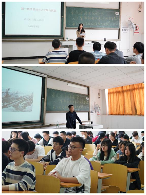 为使我院学生了解重庆市政府科技管理部门推进重庆建设国家新一代人工智能创新发展试验区的做法,了解重庆市重点企业在推进人工智能、集成电路、物联网、工业互联网的有关情况,促进学生将自己的专业知识转化为今后的工作能力,坚定未来职业发展信心,4月21日下午,通信与物联网工程学院特邀重庆市科技局高新技术处新一代信息领域项目主管、调研员陈涛先生进行了关于“重庆建设国家新一代人工智能创新发展试验区背景下新一代信息技术之发展与挑战”的主题讲座。此次讲座由李文娟副院长主持,通信与物联网学院高年级学生参与。