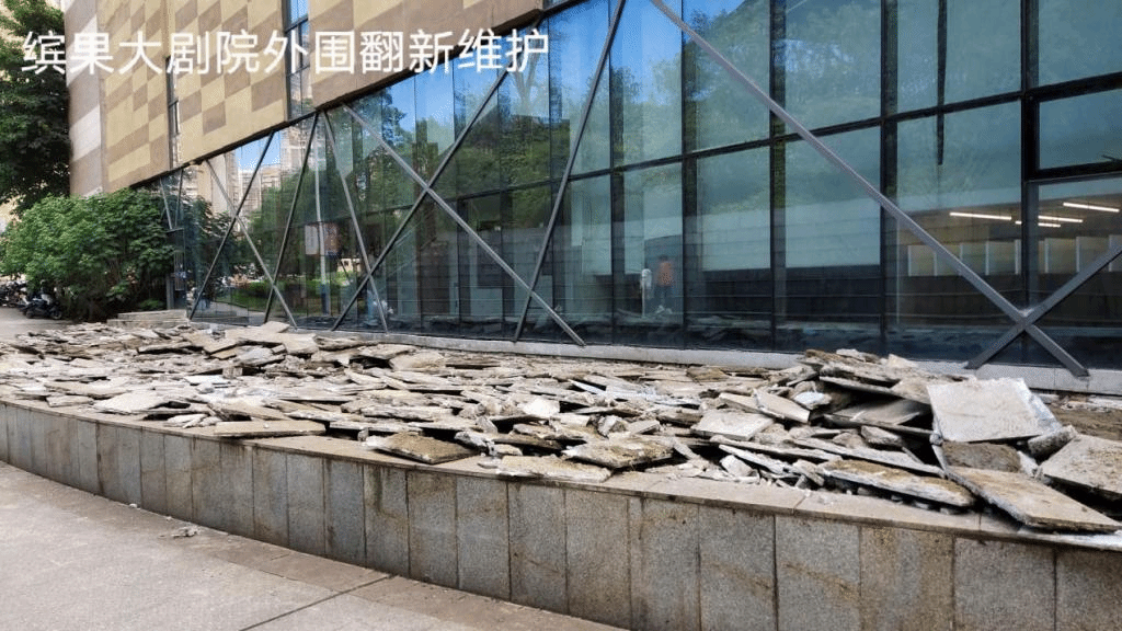 本月,活动相对减少,这也给剧场管理工作留出一定的时间来巩固和完善。缤果大剧院外围地面塌陷维修工作在11月基本完成,维修人员将外围塌陷部分拆除重新铺设新的地砖和混泥土,现在已经焕然一新。缤果大剧院外围作为日常重要活动的侯场及串场区域,安全极为重要,这为疫情缓和后大型活动的举办有着重要作用。