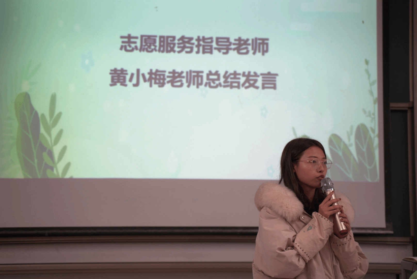 最后,艺术传媒学院青年志愿者协会指导老师黄小梅老师对此次培训活动做了总结发言,将“奉献、友爱、互助、进步”的志愿者精神做了解读。志愿服务,并不需要轰轰烈烈的壮举,志愿服务是困难时向别人伸出的援手,志愿服务亦是给予他人的微小帮助。只要心怀大爱,即使一个小举动,即使一件小事,也是志愿服务,也能够温暖人心。