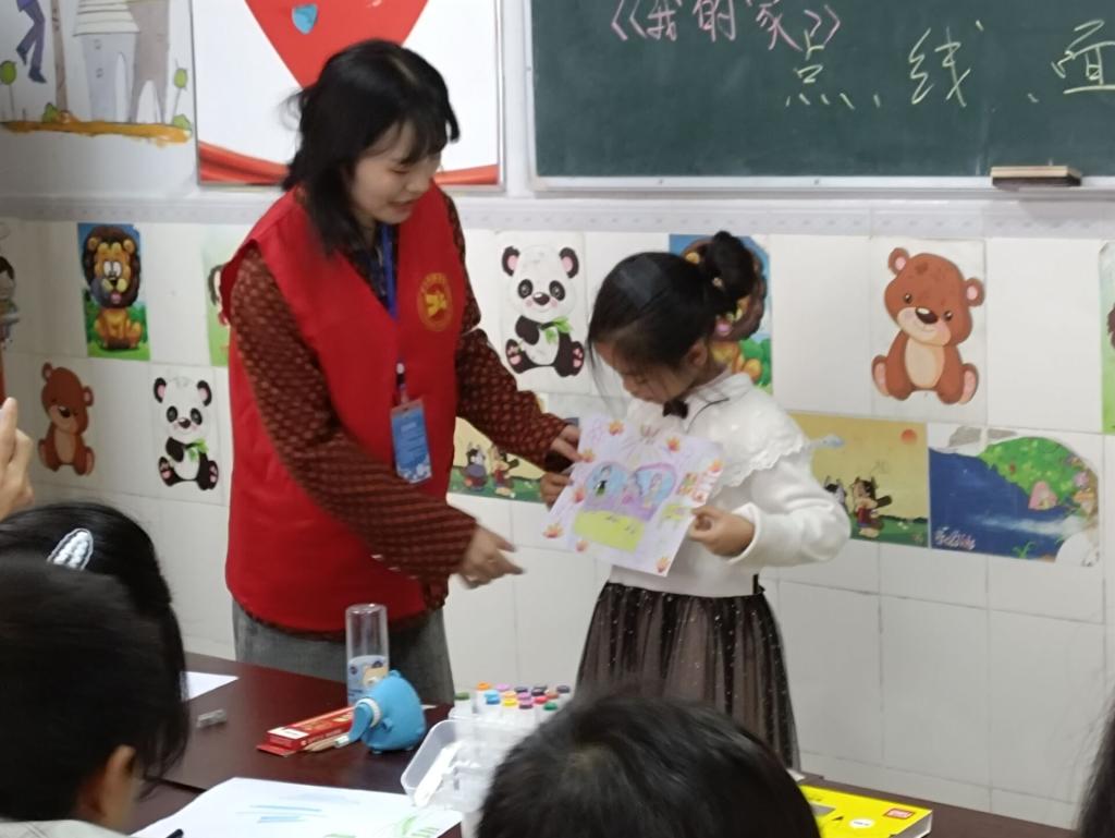 小朋友们在志愿者的组织下,通过游戏、绘画、科学知识、剪纸等形式,发展兴趣、开发智力。在认真学习、积极参与的过程中,小朋友们收获了内心的快乐与满足,了解了一些有趣的科学知识,也锻炼了自己的动手能力,为他们之后的成长打下良好的基础。“来,跟大家说说你画的是什么呀?”“我画的是我的家,有爸爸、妈妈还有我,我们开心地在郊外春游”。小朋友们一一展示他们的绘画作品,在一片欢声笑语中结束了此次活动。