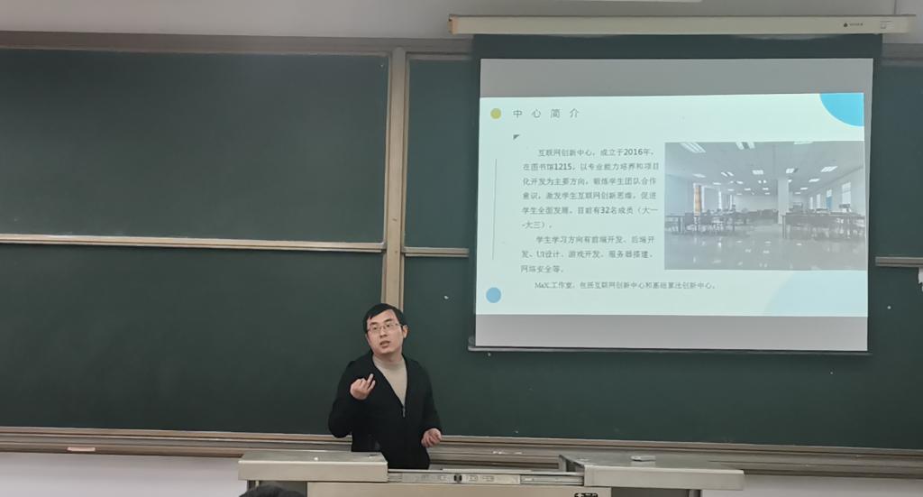 随后,各个创新中心负责人依次介绍了各自中心的情况。互联网创新中心负责人赵凤龙老师,介绍了互联网创新中心主要涉及的项目领域,以及该中心的日常工作,并分享了学生所获得的竞赛奖项;基础算法创新中心负责人吴晓庆老师谈到,该中心是大数据与软件学院唯一一个校级创新中心,在介绍了基本情况后,她欢迎新老师加入进来,共同学习;大数据创新中心负责人张华老师,从三个方面对中心进行了介绍,分别是学生培养计划、优秀学员情况和未来规划;数字媒体与VR技术创新中心负责人耿强,结合数字媒体技术专业与VR技术特点,围绕近两年取得的成绩,对中心进行了介绍;计算机技术与应用创新中心负责人卢星儒,从项目案例、团队成员、未来规划、学生作品等角度,详细介绍了计算机IT技术工坊的情况。