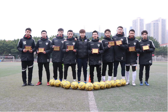 赛后,江晓羽教练为12月17号中午校男足投票选举出的2018年度校男足最佳守门员、最佳后卫、最佳边卫、最佳中场、最佳射手、最佳球员、最佳新人、突出奉献奖等奖项获得者颁发了奖牌,鼓励大家新的一年继续加油。
