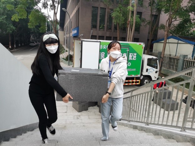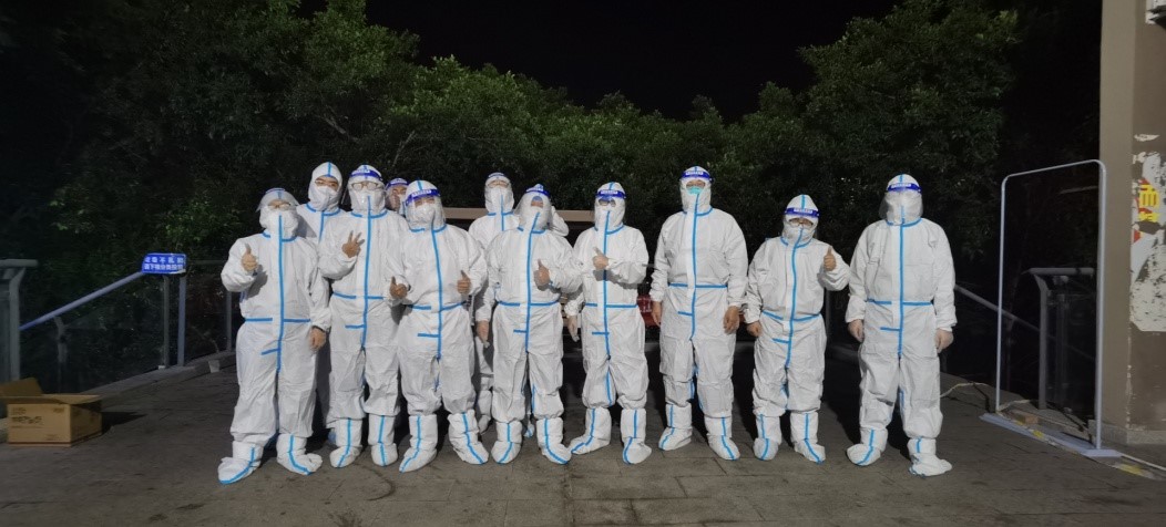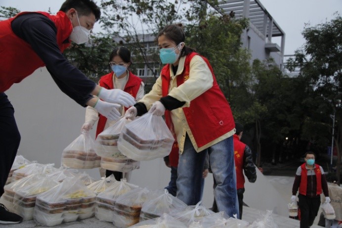 11月8日,艺术传媒学院防疫工作先锋队第一时间进校。他们的家里有嗷嗷待哺的小孩,有年迈体弱的老人,但情况紧急,“疫”不容缓。作为移通艺传人,他们想到的是学校亟需大量志愿者,想到的是还有许多工作需要接续完成,此时此刻,责无旁贷!从进校的那一刻起,他们积极地配合着学校各项防疫工作,坚守在学校各个检测点和保供点,认真统筹规划学生一日三餐的配餐、核检、消杀、配给,做好每日的核酸检测、信息录入和秩序维护等工作。