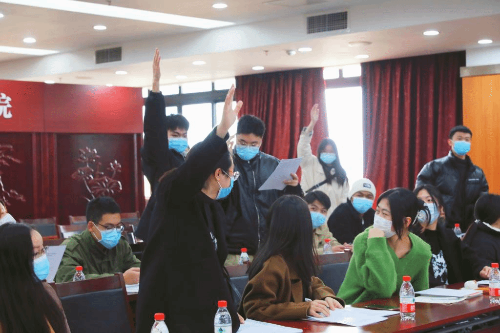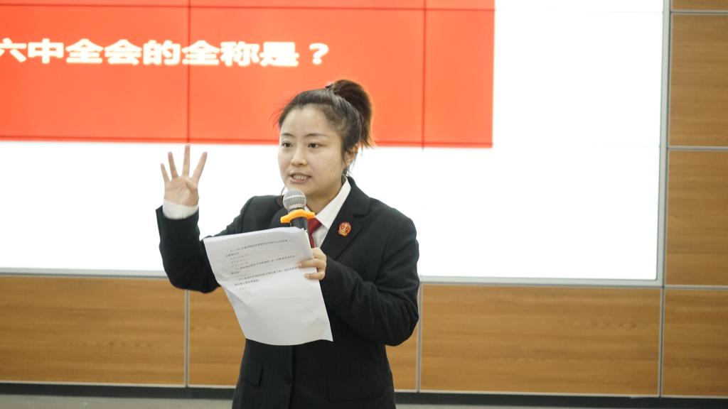 11:00,在集体学习了十九届六中全会精神后,一场别开生面的党史知识竞答在现场三十余位师生中展开。二十道与十九届六中全会精神及党史相关的问题逐一呈现,移通师生与法院工作人员们在抢答的过程中欢乐交流,共同了解红色文化,学习红色知识。而移通师生的抢答热情和答题准确率也让法院的工作人员们惊叹:“原来理工科的学生也能这么流利的回答党史、政治相关的内容”。针对竞答的优胜者法官助理们也精心的准备了手套、暖手宝、保温杯等小礼物,在寒冷的冬日中让同学们体会到了法律工作者的温情。
