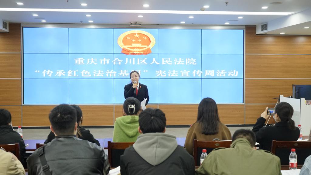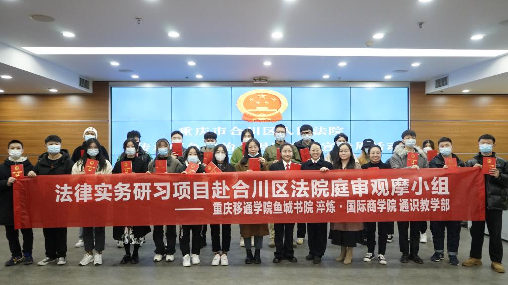英国著名法学家哈耶克在其著作《法律、立法与自由》一书中说到:正义不仅要实现,而且要以看得见的方式实现。为提高我校学子自我保护的意识和技能,通过普法教育活动浸润引导同学们正向的思考问题、以正确的方式维护自身合法权益,让同学们做到知法、懂法、用法。在第八个“国家宪法日”即将到来之际,12月2日上午9点,鱼城书院学业导师李义红、李洋与书院学生发展导师赵越、林森带领25名同学们来到重庆市合川区人民法院进行庭审观摩,沉浸式体验、零距离普法。